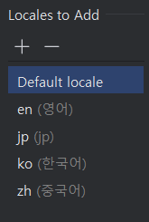 실행환경IntelliJ : 2024.3.4.1Spring Boot : 3.3.10-SNAPSHOTJDK : 17.0.13 1. src/main/resources 디렉토리 밑에 파일 생성(저는 messages로 생성) 2. yml 설정spring: messages: basename: messages/message encoding: utf-8 cache-duration: 10 fallback-to-system-locale: false 3. messages 디렉토리에 언어별 Resource Bundle 추가 (messages 폴더 우클릭 -> New -> Resource Bundle 클릭) 3-1. Locales to Add 부분에 '+' 버튼 클릭 후 나라별 언어코드( ISO 639..