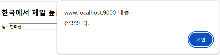 문제 2. 사용자 입력 확인 - 한국에서 가장 높은 산 맞히기