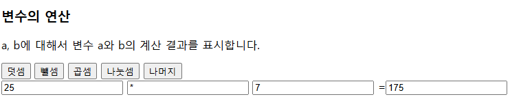 <p>a, b에 대해서 변수 a와 b의 계산 결과를 표시합니다.</p>